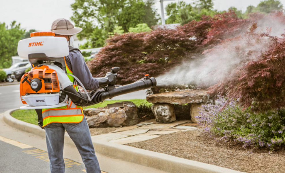 In seguito, un operatore utilizzerà un'apposita apparecchiatura di nebulizzazione - noi utilizziamo STHIL SR 450 - per diffondere una miscela di insetticida e acqua sulla vegetazione dell'area oggetto di trattamento. L’insetticida utilizzato è registrato presso il Ministero della Salute come Presidio Medico Chirurgico.
